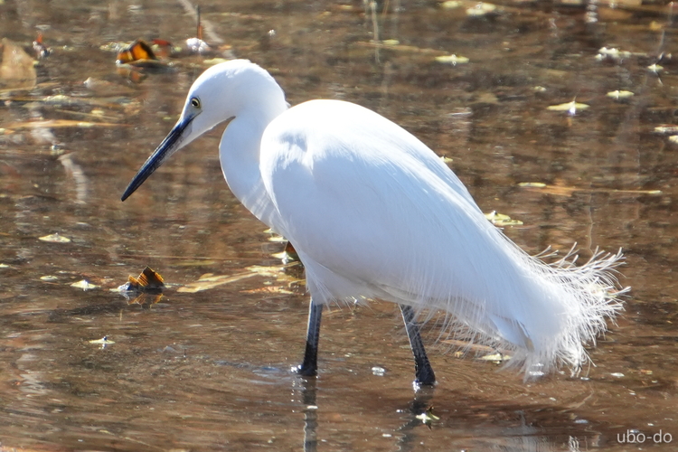 • コサギは繁殖期になると、頭と背に長い飾り羽が出る。
