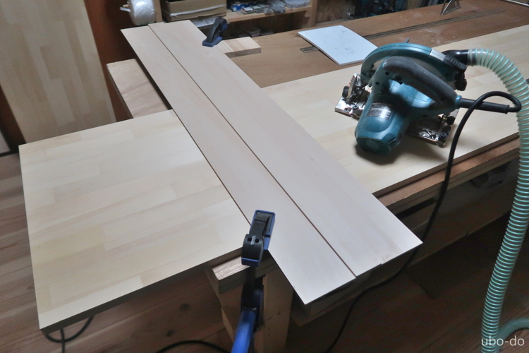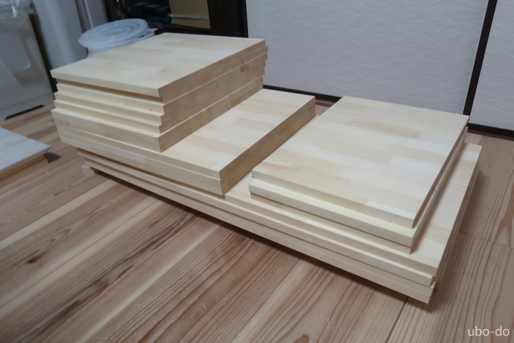 カインズで1820×910×18mmの集成材を3枚購入して、430mm幅にカットしてもらった。