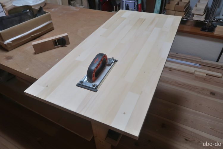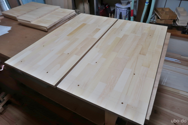 付書院部分はかなり広いので、棚は独りで持ち上げられるように2つに分けて作ることにした。まずは向かって左側に置く引出付きの棚を作る。
