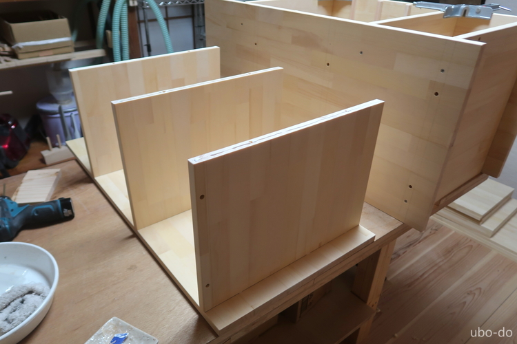棚の引出し部分は作っていないが、取っ手などの用意がまだなので第2段階へ移ることにした。