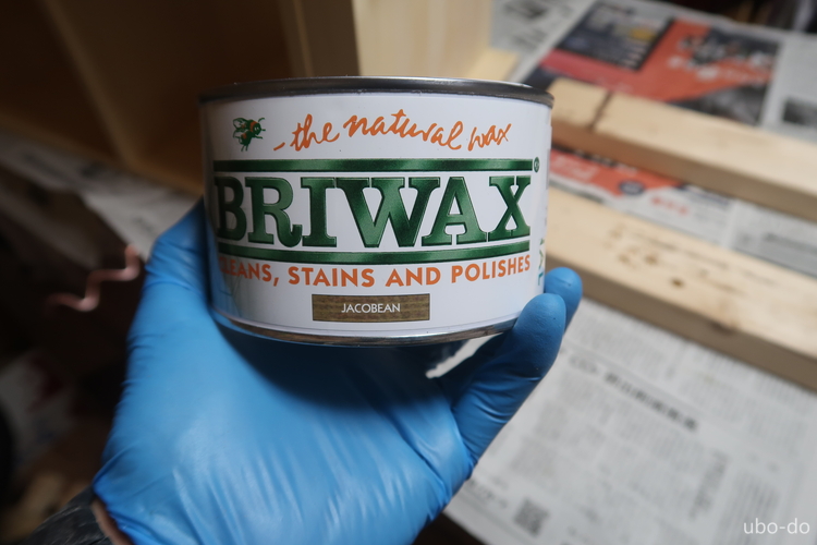 右の棚をブライワックスで塗装する