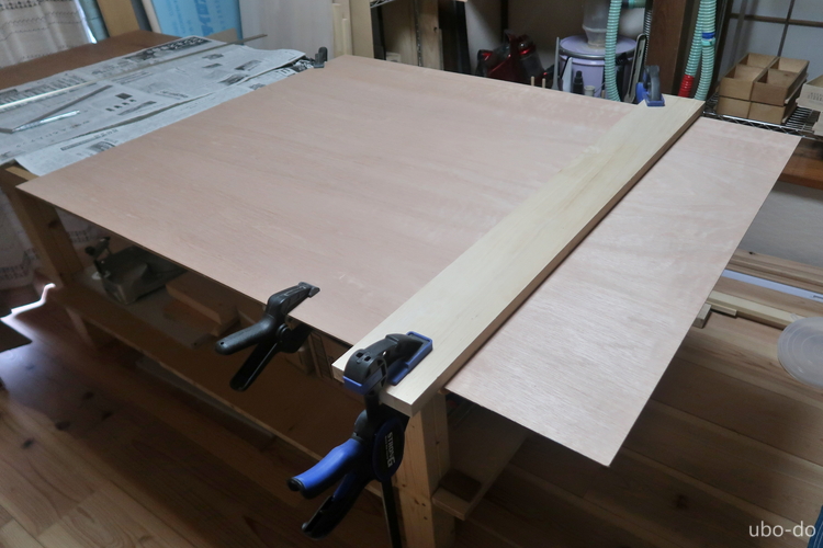 本当は厚さ16mmの集成材にしたかったが、18mm以外は幅450mm以下にカットした材しかなくて、コストを考えて18mmにした。棚が重たくなるが、強度は上がるので作業部屋にはよいだろう。