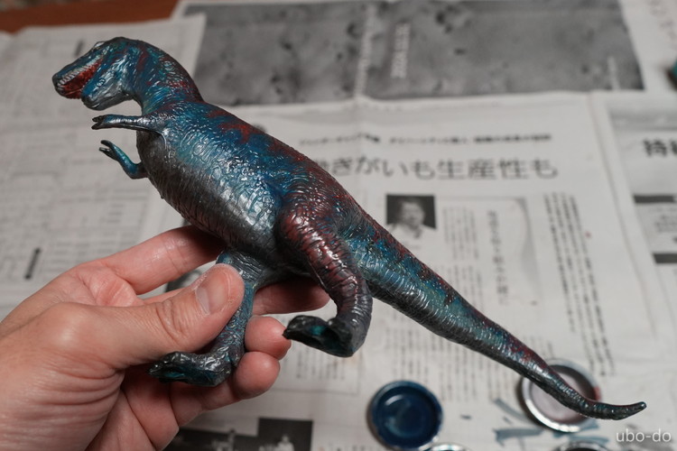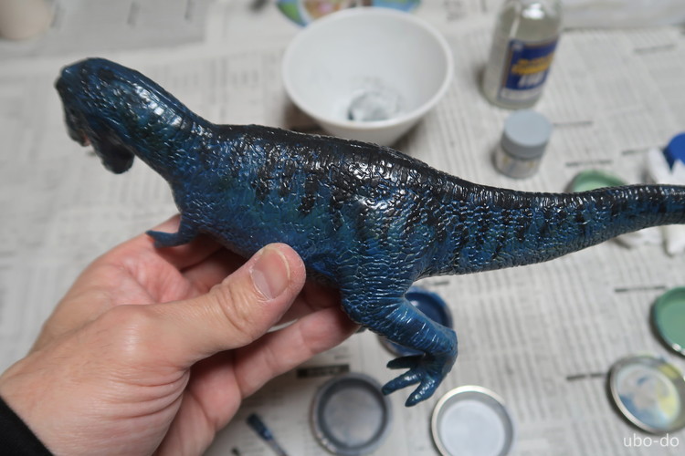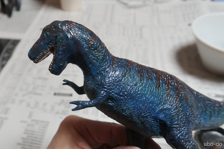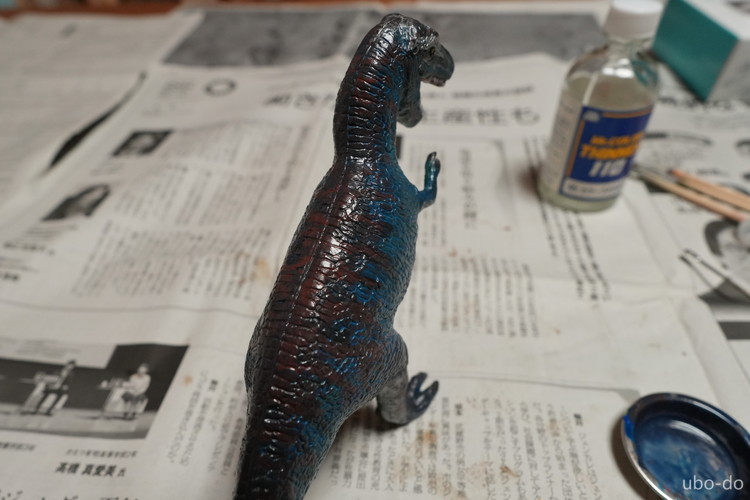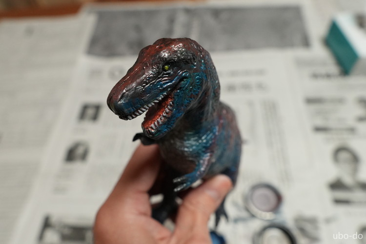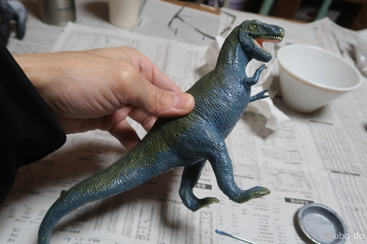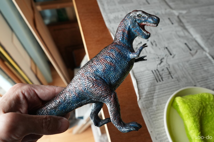 以前からあるティラノサウルスのフィギュアを好みの色にしたいと何となく思っていたが、仕上がりのイメージが固まってきたので作業に取り掛かることにした。