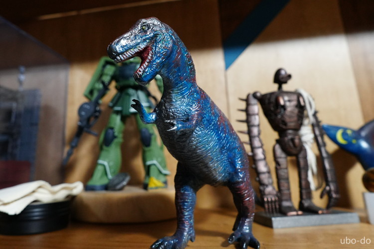 先月孫たちへのプレゼントを探しにトイザらスに行った際にブルー基調の恐竜を目にして、それが参考になった。