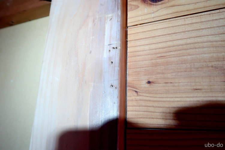 クローゼットと天袋の開き戸は、丁番のネジがバカになって建付けが悪くなっているので、開き戸を外すついでに丁番も交換することにした。