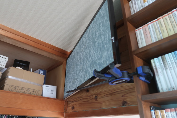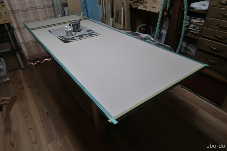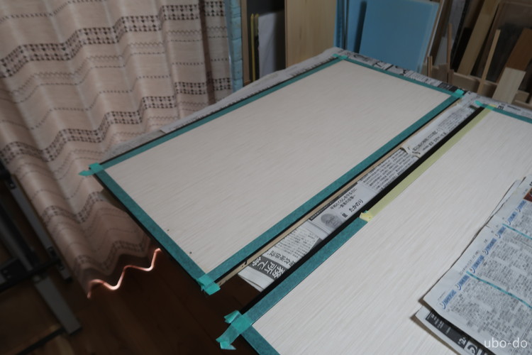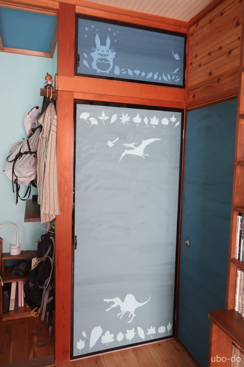 自室の片引き戸を塗色したので、隣のクローゼットと天袋の襖紙も引き戸の色に合わせて塗色することにした。