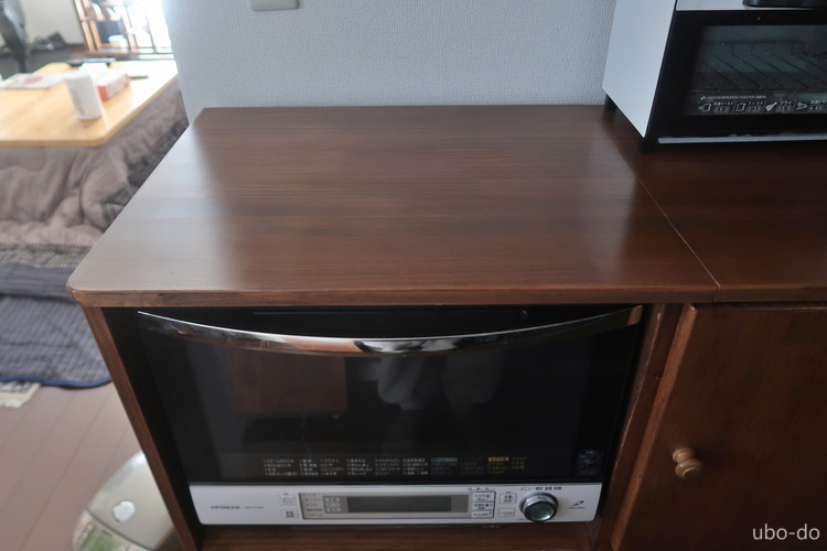 ちなみに、自作のキッチン棚はオーブンレンジの大きさに合わせて作ってあるので、レンジの上は2cmほどしか空いていない。これまで何も気にせず使っていたが、無知とは恐ろしいものだとつくづく思う。