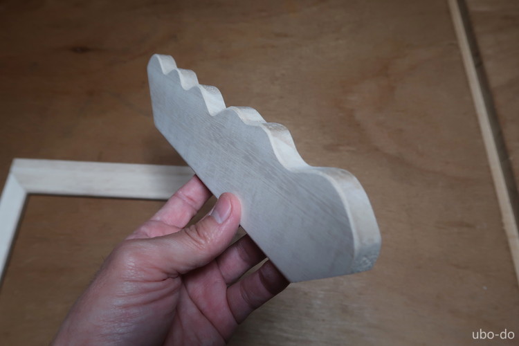額縁作りに間に合う端材を探しておこうと思ったら、適当なものが見つかったので、すぐに作業を開始した。あれこれ考えているうちに没頭してしまい、端材を加工する時の写真を撮っていなかった。