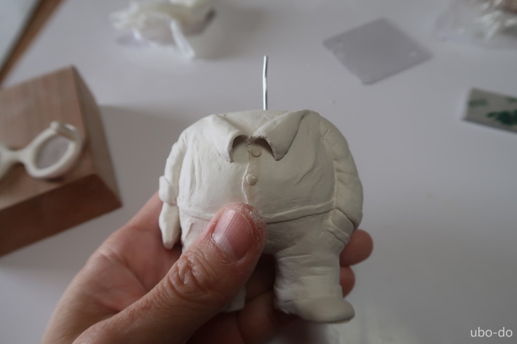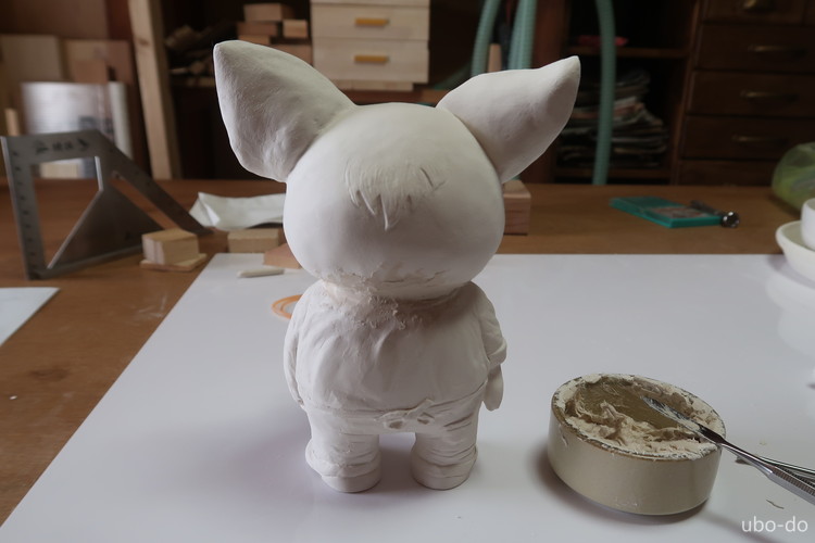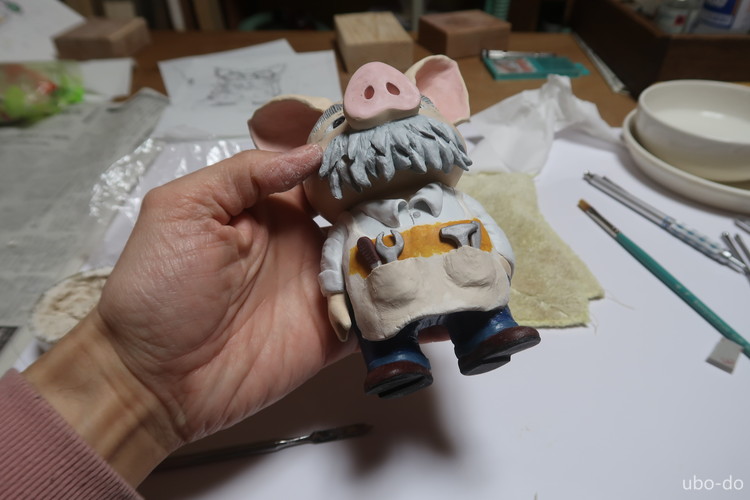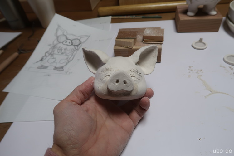 宮ブタ人形を石膏粘土で造形する