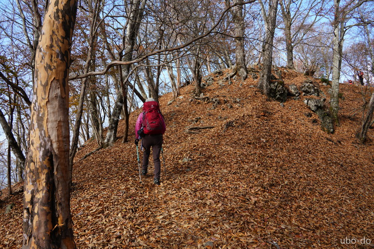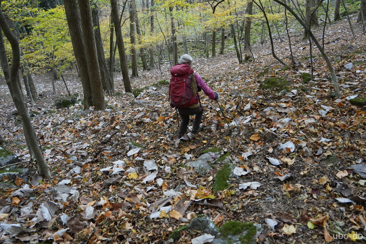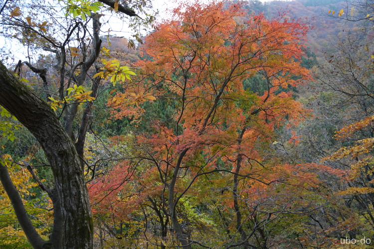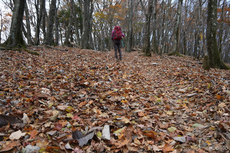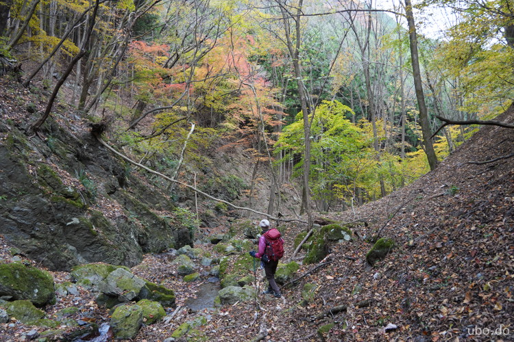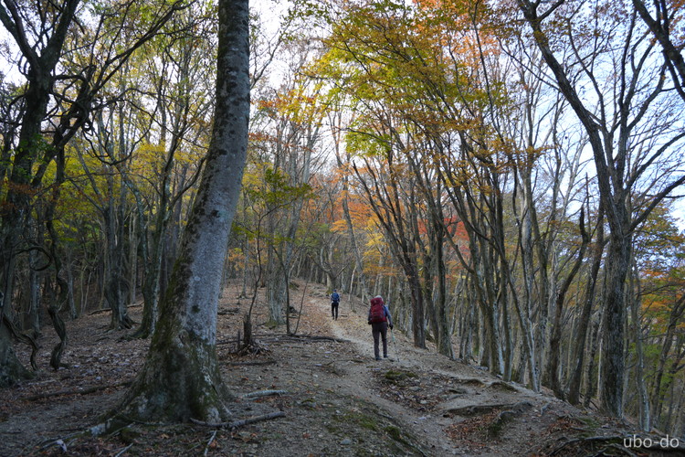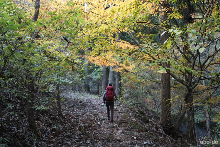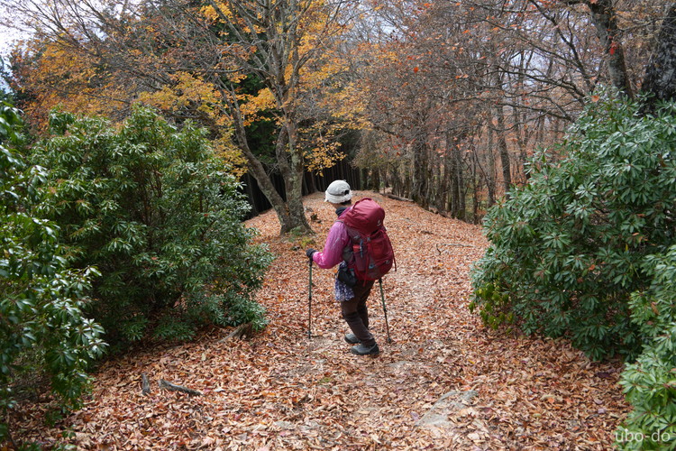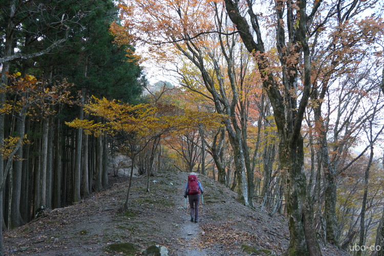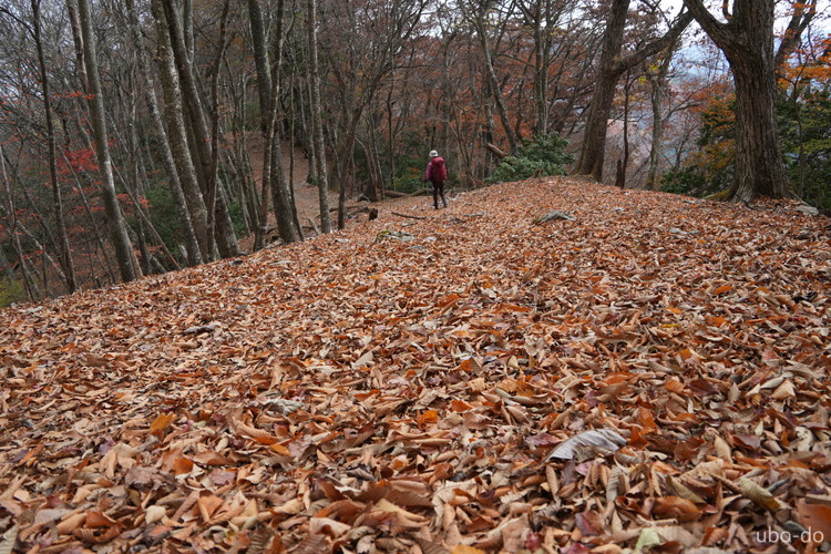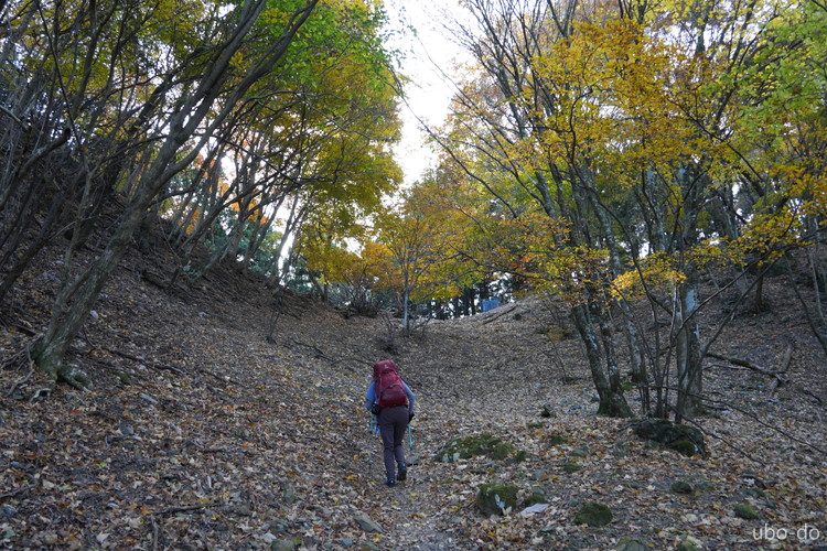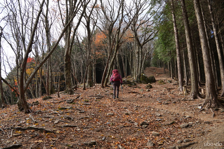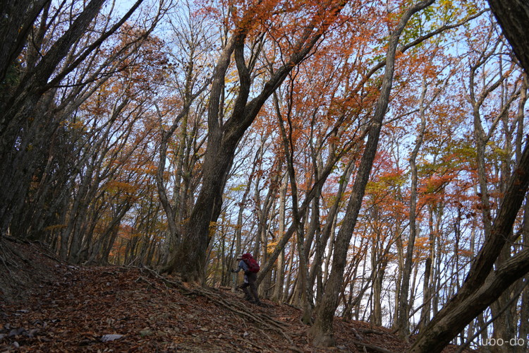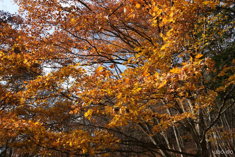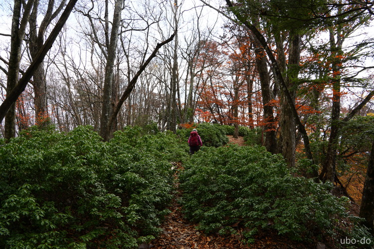 紅葉は終盤を迎えていたが、スポット的にはまだ綺麗な紅葉が残っていた。もっと日差しがあれば見栄えのする写真が撮れるのになぁ、と多少うらめしくも感じたが、久しぶりに静かな山歩きを楽しめた。